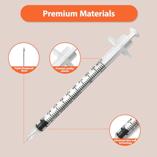 Syringes with Needle, U-100 1ml 31G 5/16″ (8mm) Disposable Syringe, Lab Supplies Individual Wrapped, Pack of 30